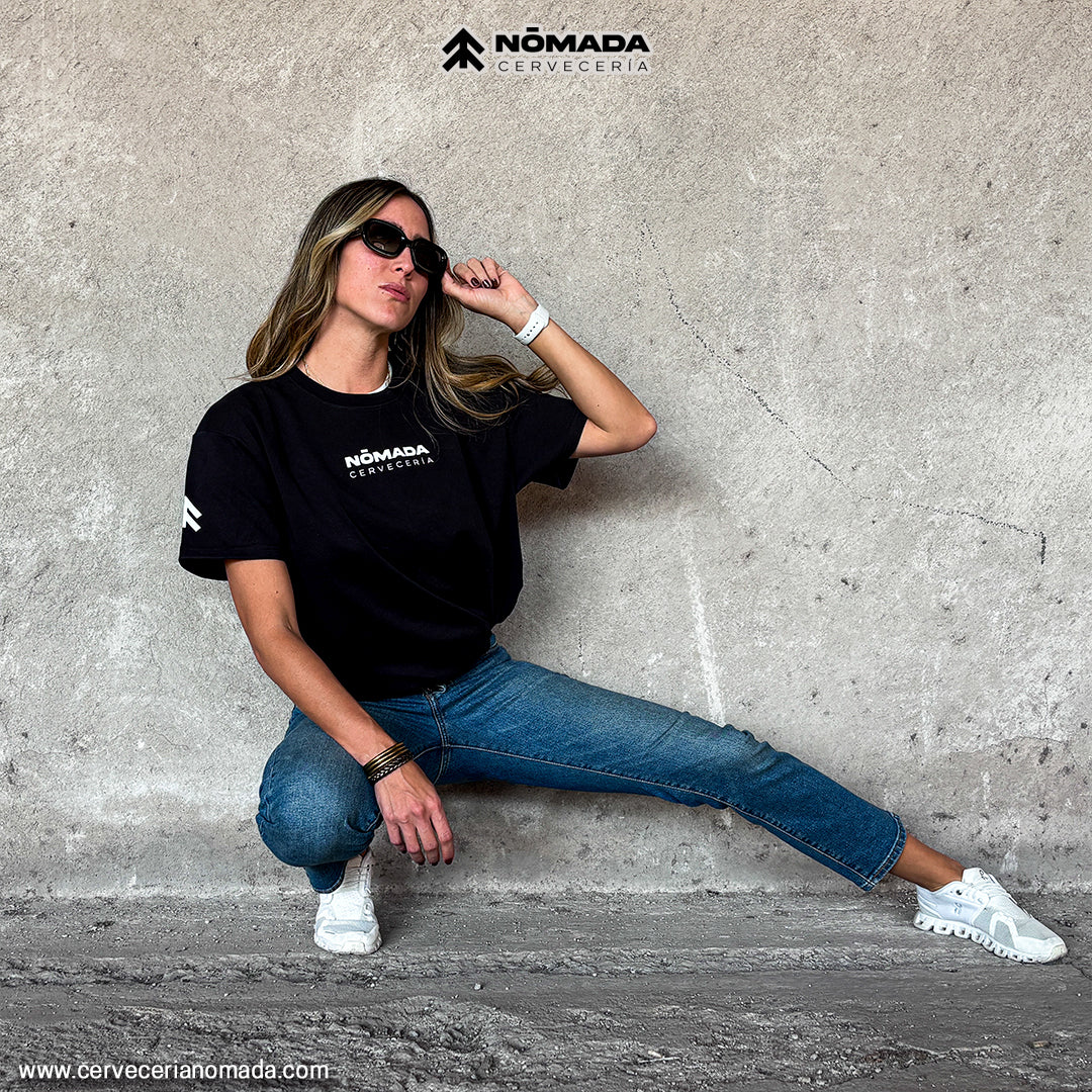 Con un diseño en color negro con el logotipo de Cervecería Nómada al frente, nuestra característica flecha en la manga derecha y nuestro logo circular en la parte trasera.